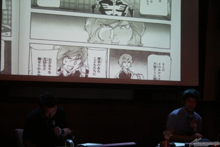 其他還有像是「下個出場的『鋼彈』角色是誰呢」之類的問題,結果老師表示「應該會有基西莉亞和基連吧,薩比家的兄弟姊妹在不知不覺出現中登場的方法我覺得不錯。但還是想要好好描寫雪拉等已經出場的角色」,「相反的蘭巴・拉爾已經有『鋼彈創鬥者』中的拉爾先生了・・・,有種被擺了一道的感覺」老師談話中交雜著這樣的玩笑回應。
