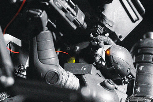 在危險的雷霆宙域消散,持續孤獨戰鬥的活死人師團狙擊手。『機動戰士鋼彈 雷霆宙域』的作者太田垣康男,在Hobby Japan雜誌上首次以模型師的身分登場,並和在許多模型雜誌上的WildRiver荒川直人合作,將本作角色的日常以記錄片風格來呈現。一般的場景模型多半是先有可以參考的圖片或影像在,但這次是由荒川先完成場景模型,再由太田桓從當中捕捉到的印象完成本作的運鏡、將作品的魅力傳達給讀者;創造出極具臨場感、一點都無法想像這是固定模型的畫面來。