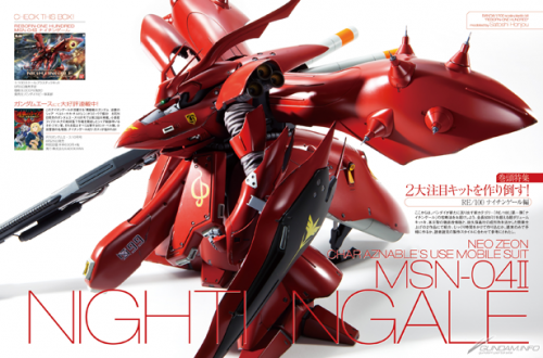 鋼彈模型迷們注目的大型套件連續推出。Ver.Ka的最新作「Hi-ν鋼彈Ver.Ka」和備受期待的新產品RE- BORN-ONE HUNDRED「夜鶯」。本期將會聚焦在這2大套件上。就透過NAOKI和本庄聖嘔心瀝血製作的精緻範例、烏谷唐央的原創色HWS、田久保義行的簡單夜鶯完成法等各種不同表現方法來欣賞這2大套件的魅力。