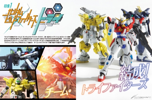 從第1話起就以高潮揭開故事序幕的TV版動畫『鋼彈創鬥者TRY』。電擊HOBBY雜誌的改造製作範例也自本月起解禁!除了有HG「製作燃燒鋼彈」、「重裝高出力型吉姆」的徹底改造範例外,還有預定11月發售的「電光鋼彈」搶先介紹!! 一次為大家送上TRY FIGHTERS隊的所有機體!
