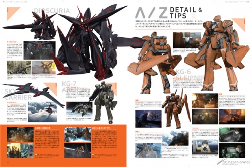▲以TV動畫第1期中登場的「KG-6 SLEIPNIR」為中心,並解說「DIOSCURIA」「SKY CARRIER」等機體的機械設定。