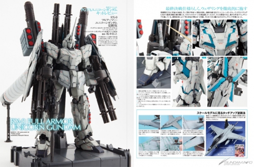 接續前號內容,徹底探討2014年底的最受矚目商品、「PG 獨角獸鋼彈」! 這次使用在本體發售同時開始受理訂單的「PG 1/60 RX-0 獨角獸鋼彈用FA擴充組」,刊載「全裝甲獨角獸鋼彈」。當然,獨角獸的本體也是全新製作。用精神感應框架閃爍翡翠色光芒的“覺醒版”,假設是在激戰後,受損的情況,以風化完工的方式完成。