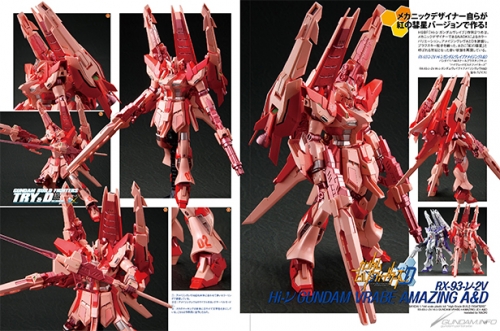 ▲「HGBF 1/144 Hi-ν鋼彈VRABE」的2個作例,裝備本號的鋼彈模型武器附錄「驚異LEVD」。完成的最強形態。