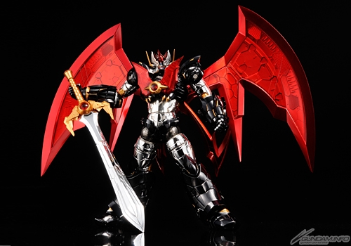 以壓到性的份量及可動動作蔚為話題的「RIOBOT 魔神凱薩」,在全身金屬塗裝及電鍍處理後新裝登場。讓觀賞者不禁發出讚嘆的壓倒性動作機構、全幅320mm的巨大凱薩飛翼,以及全長215mm的最終凱薩劍等等,維持著原本的魄力,以像是發動魔神力量的耀眼金屬本體,還有各種塗裝表現加以重現。