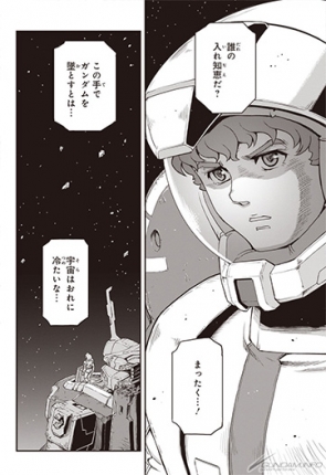 負責作畫的是創作「機動戰士鋼彈 MSV-R 宇宙世紀英雄傳說 霓虹的松永真」的虎哉孝征,機械設計則為負責過『鋼彈Reconguista in G』、『機動戰士鋼彈 鐵血孤兒』的形部一平,第1話頁數就一口氣超越70頁,隸屬隆德・貝爾部隊的阿姆羅・雷也將於故事中登場。