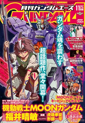 而GUNDAM ACE 11月號為了紀念本作品連載開始,除了有刊登福井老師的長篇訪談外,還有附送特別附錄「MOON鋼彈」的主視覺圖海報。