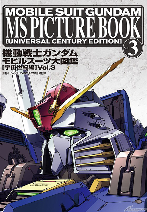 網羅宇宙世紀系列MS的MS大圖鑑化為3月號連續100頁冊子附錄!Vol.3收錄漫畫及遊戲、小說及雜誌企畫登場的宇宙世紀鋼彈設定畫稿。