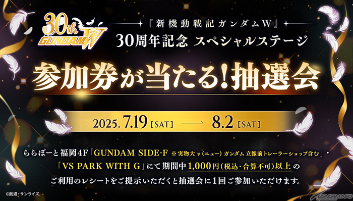 在以下抽獎中贏得大獎“鋼彈W”30 周年特別舞台參與券的人將能夠參加。