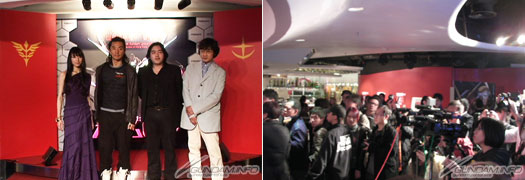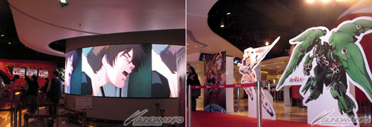 」舉行。巨大的電影看板、圓柱的螢幕上,不斷放映電影宣傳影片,會場清一色都是「鋼彈