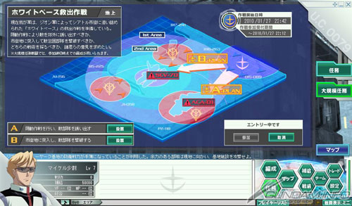 世界内的所有玩家都可以參加的大規模任務“第一關”,聯邦側將進行『白色木馬救出作戰』,吉翁側會進行『木馬包圍作戰』,在一共舉行三戰的預選之中拿下好成績的話,就能以增援的身份參加可以與阿姆羅與夏亞、卡爾馬等原作角色並肩作戰的「大規模任務最終戰」。