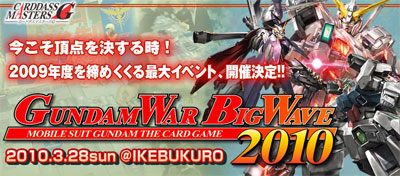 對戰型卡片遊戲「鋼彈大戰」,2009年度決定勝負的大型活動『鋼彈大戰 BIGWAVE 2010』,將於3月28日(日)在池袋SUNSHINE文化會館大廳C廳舉行。