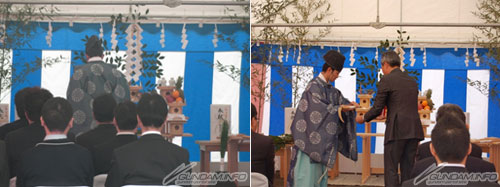 當天,在靜岡縣JR東靜岡站 站前廣場上,原本陰雨綿綿的天氣突然出現一道晴朗,現場由BANDAI株式會社 代表取締役社長 上野和典(照片第2張・右)等相關人士,在平和的氣氛中,進行了安全祈願的儀式。