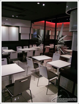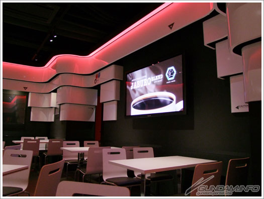 店內以鋼彈的世界觀為題材,大量使用曲線造型,來表現近未來感的設計。