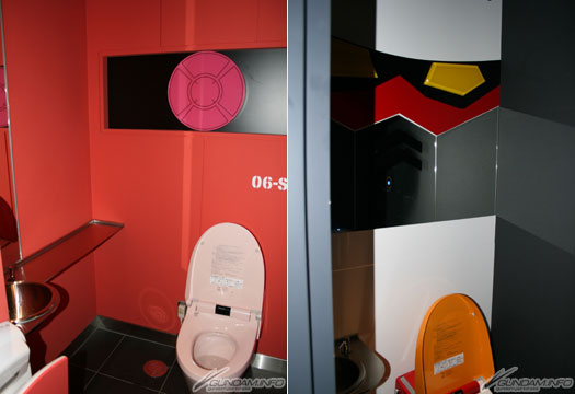 以鋼彈和夏亞專用薩克為主題,分別設計的男女廁所內,各自設有神祕的機關按鈕喔。