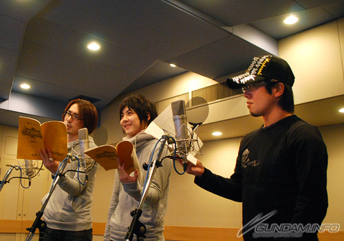 飾演劉備鋼彈的梶 裕貴先生挾在中間,右邊是飾演張飛鋼彈的加藤將之先生,左邊是飾演關羽鋼彈的安元洋貴先生。三個人已經合作無間!