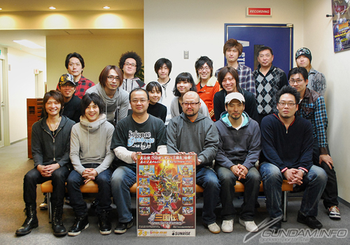 (第一排左起,飾演孫權鋼彈的島﨑信長先生、飾演劉備鋼彈的梶裕貴先生、森邦宏導演、鈴木健一導演、飾演呂布托爾吉斯的宮内敦士先生、飾演曹操鋼彈的乃村健次、