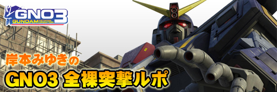 大家好,我是岸本MIYUKI。 這個報導也迎向了最終回。 在這10個禮拜間廢寢忘食地整個人沉浸在GNO3中,雖說如此, 我最大的收穫果然還是在網路上和交到了一群快樂的夥伴這件事情。 以前應該也有寫過、所謂網路遊戲的醍醐味 我認為就是和一群志同道合的夥伴交流這件事情。 這個月底也是預定會舉辦我們隊伍的見面會,真是非常期待。 能和這樣的一群人相會,真的是要感謝BANDAI NAMCO。 那、最基本的遊戲內容… 說句老實話、給人的是一種還在發展中的印象。 雖然在前些日子的殖民地雷射爭奪戰中迎來第1輪的最終回, 最後也只有在最上面出現一張圖來表示, 也沒有提及什麼關於特別IF展開的歷史等等。 實在是很可惜,感覺有種什麼都還沒釋放出來就已經結束的感覺。 就算不是卡密兒,也會想要對營運公司昂然挺立呢(笑) 只是,這也可以說是網路遊戲中一種的醍醐味吧、 反述己經許多次的更新,經過數年的時間,系統將變得更洗鍊、 就會慢慢的成長,直到被稱呼為名作的遊戲。 正因為如此,我在今後也想要繼續玩GNO3。 我相信一定會在未來的某一天,GNO3一定可以變成我能夠挺起胸膛向大家推薦的遊戲。 …就算只有一點點,還是想試試看幫助一下贊助原廠(笑) 所以給我認真一點加油阿!BANDAI NAMCO! 第2輪、啟動! 那麼,本週開始就是令人期待的第2輪要展開啦。 就像之前公告的一樣,08小隊的MS等等皆已追加、 經過許多變更的規格樣式進化成更加愉快舒適的GNO3,應該是要這樣… 結果因為變更了太多的規格樣式,結果已經完全變成了別的遊戲了嘛!(笑)