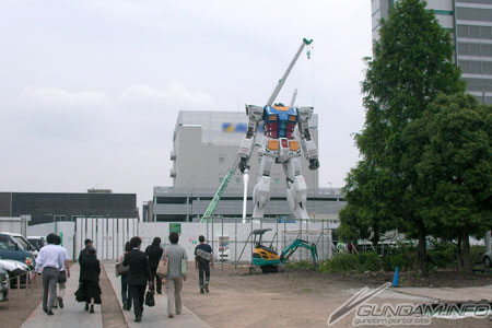 「機動 戰士鋼彈 」 總導演富野 由悠季 ,率領著建造相關業者,舉行設置前的安全祈願儀式。當天,靜岡周邊的天氣預告為雨天,不過當天卻毫不受到影響,頭部安裝工程照原定計畫進行。
