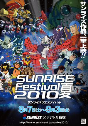 「 SUNRISE Festival 2010 夏 」是8月7日(六)~9月3日(五)為期約1個月,每週以特定主題,精選SUNRISE作品,連日於晚場上映的動畫影展活動。每週的最後一天,安排該系列作品相關的來賓登場,接受訪談,舉辦通霄活動。