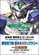凡購買一日乘車券,於都營地下鐵 9 個車站內所設置的特製印章區內,收集到 5 種以上的印章,就可獲得達成獎品「鋼彈 00 特製貼紙」。