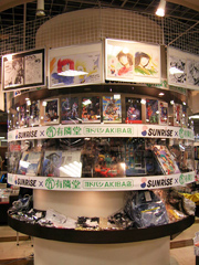 以「鋼彈」為主,販賣包含「伊甸王」、「重戰機艾爾鋼」等,SUNRISE的懷舊作品的相關書籍、COSPA的T恤等各式商品。