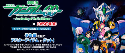 終於將在9月18日(六)上映的「劇場版 機動戰士鋼彈00 -A wakening of the Trailblazer-」現正舉辦,只要在卡拉OK JOYSOUND的最新機種CROSSO收看劇場版的預告篇,就可以得到「劇場版 鋼彈00」原創虛擬道具活動!