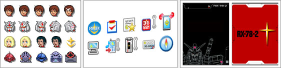 「945SH G Ver.GP30th」擁有許多専用原創內容,例如MY繪圖文字和目錄畫面的圖樣、docomomail面板、照相功能的指導說明等等,連極細微的部分都是鋼彈樣式。