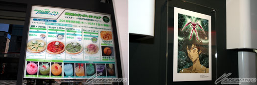 活動期間內,不但有以鋼彈00為題材的特製餐點、冠上角色名稱的飲料等追加在MENU當中之外,還有販賣描繪著MS圖案的杯墊等限定商品。