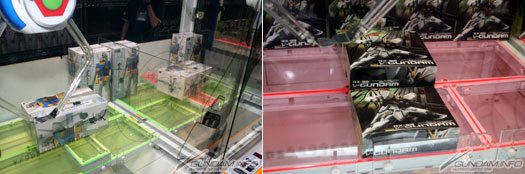 鋼彈作品全部放在展示櫃內的夾物機台怪手,可以把「超大尺寸軟膠公仔~RX-78-2 鋼彈~」、「DX BREAK IMPACT ~逆襲的夏亞~」等夾出來喔!