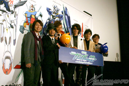 初日的這一天,在都内的劇院舉辦了舞台見面會,並且有水島精二導演與擔任鋼彈尖兵聲優的宮野真守、三木眞一郎、吉野裕行、神谷浩史,還有擔任劇場版新角色「笛卡兒.雪曼」聲音的演員勝地涼登台。