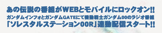 2010年即將到來的對話・・・ 在劇場版公開前,對鋼彈INFO WEB,以及 鋼彈GATE手機版進行武力介入, 與聽眾一起炒熱氣氛的00情報娛樂節目! 『天上人廣播站00R』任務終於開始!!! ◆配信預定表