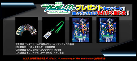 活動除OUTLET館之外,將於全國的「唐吉訶德」、「MEGA唐吉訶德」、「長崎屋」等設有點券機的門市實施。凡消費滿500日幣(含稅)以上,就有機會參加抽獎,獎品有宣傳介紹手冊、特製海報等,包含了非賣品的超稀有贈品。參加獎的部份也有『機動戰士鋼彈00劇場版』的電影折價券等,保證人人有獎。抽獎方式請利用各店內的點券機,進行即時抽獎並於當場領獎。