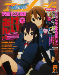 本月的封面&主力特集為,決定製作成動畫電影的『K-ON!輕音部』大特集♪最終回感動的畢業典禮。大家也都無法忍著流淚看完吧?附上角色設計堀口悠紀子所繪製的新圖海報,滿滿的15頁大特集!首先在本誌上回顧最終話吧♪山田尚子導演的訪談幫我們整理了內容。接下來是豐崎愛生(飾演平澤唯)&日笠陽子(飾演秋山澪)的附圖特別訪談!還有本期的封面海報、以及從Archive選擇了精選插圖,製作成原創圖書卡(3張組)的全員贈品企劃 ☆ 身為『K-ON!輕音部』的粉絲絕對非買不可!附錄為大受好評的雙面資料夾3入組!收錄了『K-ON!輕音部』、『黒執事II』、『無頭騎士異聞錄』的豪華陣容。使用美麗的插圖製作,絕對讓你捨不得用♪ 特集為秋季新作! 『薄櫻鬼 碧血錄』、『魔法禁書目錄II』、『女僕咖啡廳』、『STAR DRIVER 閃亮的科塔特』、『咎狗之血』等等♪ 一舉介紹編輯部推薦作品!! 錯過第1話的人只要看了這個就沒問題啦☆ 由人氣演出者為各位講解第一話的必看點,也可以拿來複習內容喔♪ 注目度No.1的『薄櫻鬼 碧血錄』附上夾頁海~報。大人氣的『義呆利World Series』-「北歐5大集合」、『閃電十一人』-「日課是很重要的喔」等等,滿載稀少樣式的新繪製海報♪ 『劇場版 機動戰士鋼彈00』水島精二導演訪談登場!『黒執事II』、『戰國BASARA貳』、『妖怪少爺』、『劇場版Heart Catch 光之美少女!』等等,人氣作品滿載特集☆ 就是這樣,本月『Animage』11月號也充滿豐富的內容,現在就馬上CHECK吧♪