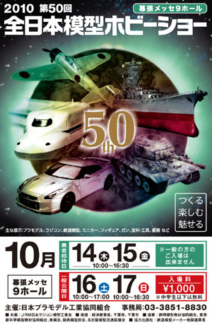 今年邁向第50 屆的「2010第50屆 全日本模型玩具展」活動中,包含從縮尺模型到RC模型、工作等,集合了在年前發售,備受注目的全新商品展示。