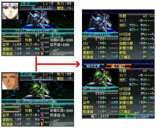 斬擊型薩克幽靈(伊薩克專用機)為夥伴補上「格鬥武器+100」「裝甲値+100」獎勵。