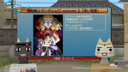 藉由「TORO」與「KURO」輕快的談話來介紹遊戲、動畫娛樂情報話題最新頭條的PS3®・PSP®用線上播放節目「週刊TORO STATION」中,本日11月5日公開了『機動戰士鋼彈UC episode 2「紅色彗星」』的特集。
