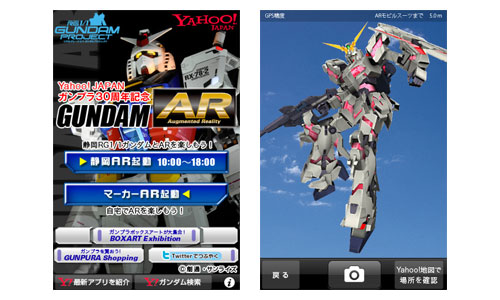 因為可以體驗AR(擴張現實)而造成話題的iPhone APP『GUNDAM AR』裡,最新追加了「1/1獨角獸鋼彈」。將東静岡的RG 1/1 鋼彈利用APP來拍攝的話,在照片的上空裡將會出現獨角獸鋼彈。另外也可使用已安裝的「1/1夏亞專用薩克」、「1/1 00強化模組」和AR進行結合,讓RG1/1鋼彈的樂趣更上一層!