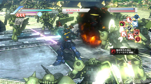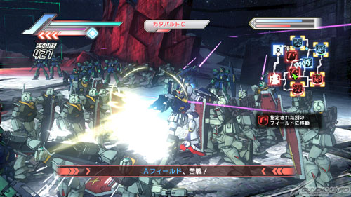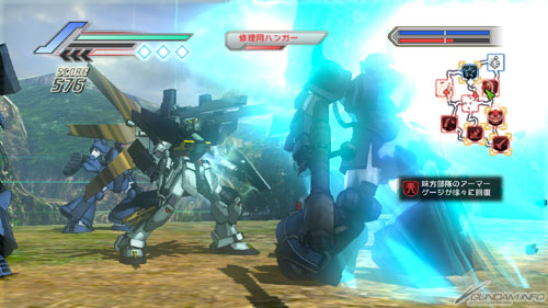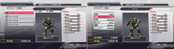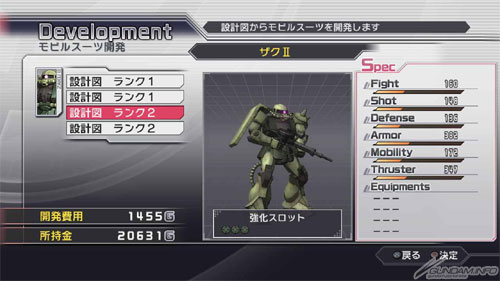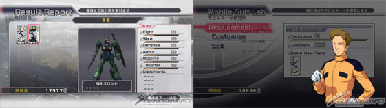 前作裡為了得到新的MS,需要收集所有的組件,但是,在本作中改為需要的是設計圖,手上同時可持有的機體也從一台增加為四台,在調度使用上大幅向上提昇。