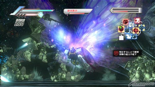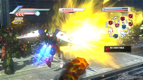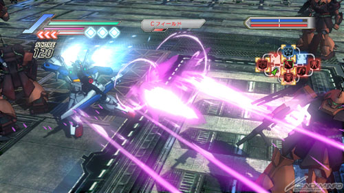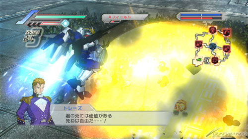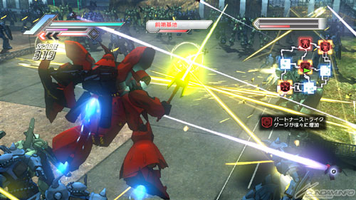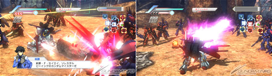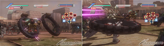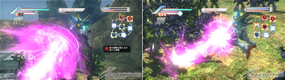 會針對攻擊玩家機體的敵機進行攻擊的搭檔攻擊。以飛翼鋼彈零式來說,會以雙管光束毀滅步槍鎖定攻擊玩家機體的敵機進行攻擊。