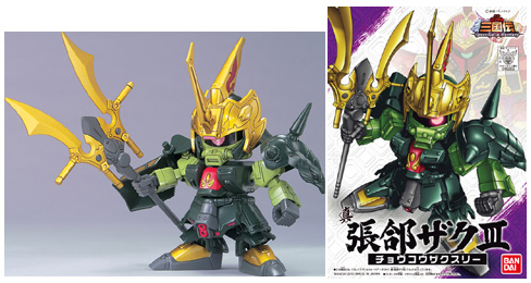 袁紹軍中非常重視忠義的豪腕武將「張郃薩克III」在電視動畫版登場囉。特別擅長格鬥戰,有著連鋼鐵都能粉碎的鋼拳。攜帶可以變化成5種型態的狼牙・双重戟。