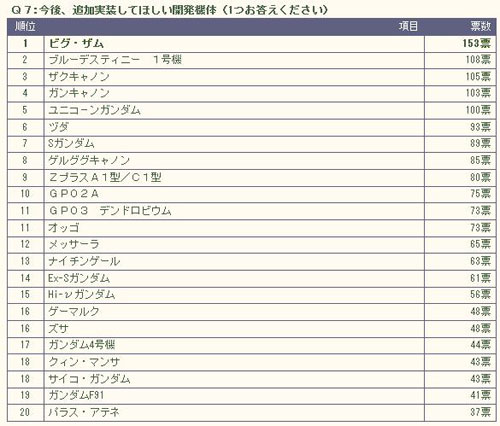 ▲為了不破壞遊戲的平衡性,問卷調查中前20名內的機體半數以上皆在調整中。