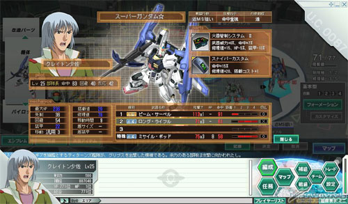 以上方畫面為例,裝備新追加的改造零件「火器管制系統II」與「吉姆狙擊特裝型」之後,雖然對修理值等數值造成下降,但小隊的整體攻擊力有明顯地上升。