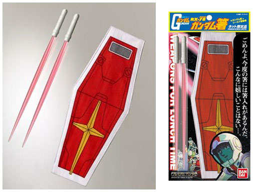 以鋼彈的代表性裝備「光束軍刀」為主題所製作的筷子「RX-78鋼彈筷」,本次特別推出與「光束盾造型筷子套」的組合,於萬代官方購物網站「Premium萬代」上數量限定販售。於本日開始接受預約,商品預計於2011年3月寄送。價格為2,100日圓(含稅)。
