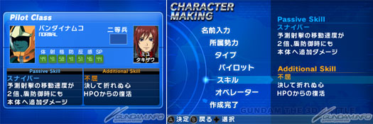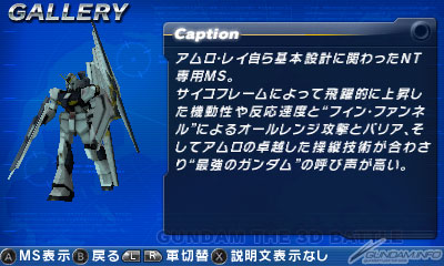 玩家先自創一位的駕駛員,和稱做愛機的MS一邊進行同步,以宇宙世紀為舞台的激烈戰鬥後,透過任務過關來體驗一下吧。