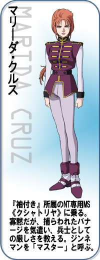 瑪利妲的本名為「普露12號」。為人工生育出的新人類第12號試作品。於第一次新吉翁戰爭的最終決戰中搭乘量產型丘貝雷。 |