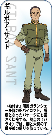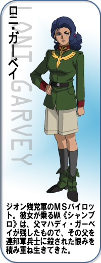 在《類・阿含號》上服役的醫務官。在『Z鋼彈』中的格利普斯戰役時在《阿含號》上服役,從『鋼彈ZZ』的第一次新吉翁戰爭開始便在《類・阿含號》上服役的老兵。 |