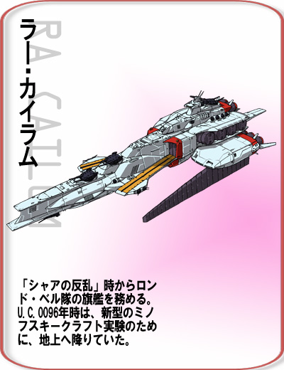 U.C.0090年於地球聯邦軍内部設立的外郭新興部隊。現在依然是由布萊德・諾亞所指揮。隆德・貝爾隊所屬的強襲登陸艦《類・阿含號》接到了奪取『拉普拉斯之盒』的任務。 |