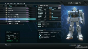 啟用髒污表現 | 啟用在連續使用同一台MS之後,會漸漸變得充滿污垢與髒污的表現。 此表現並不會影響機體的性能,而污垢與髒污將會因為沒有出擊的時間漸長而自動掉落。 |