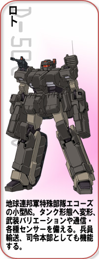 U.C.0090年於地球聯邦軍内部設立的新興部隊。現在依然是由布萊德・諾亞所指揮。隆德・貝爾隊所屬的強襲登陸艦《類・阿含號》接到了奪取『拉普拉斯之盒』的任務。 |