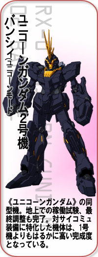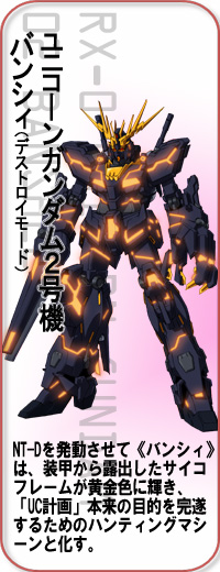 《獨角獸鋼彈》搭載的系統,一旦察覺到敵機的精神感應便解除一切限制,變更為毀滅模式。甚至可干擾敵機的感應砲。 |